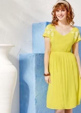 Плаття жіноче з вишивкою від бренду ESMARA Матеріал : верх 100% віскоза Є підкладка - 100% бавовна Колір : лимонний В поясі резинка , заді на зав’язку Розмір : 44( європейський) Заміри : ПОГ 63 ; ПОТ 37( тягнеться до 63); ПОБ 70; довжина 103 см Виробник : Німеччина Дивитися по замірах ☝️