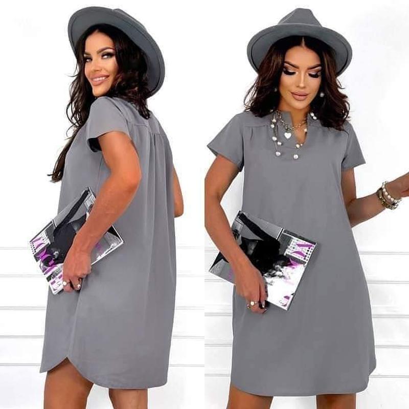 Легка лляна сукня, розмір 50-52. Матеріал льон-стрейч, приємний, не парить, не світиться. Сукня вільного крою, довжиною до коліна +-, короткий рукавичк. Колір сірий. Заміри: 46-48 Обхват грудей 100 Обхват стегон 112 Довжина 90 50-52 Обхват грудей 114 Обхват стегон 122 Довжина 95 54-56 Обхват грудей 122 Обхват стегон 132 Довжина 100