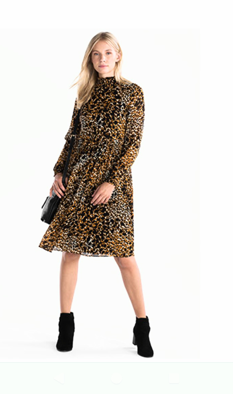 Красивое нарядное шифоновое платье с леопардовым принтом, низ-юбка плиссе, объемные рукава, воротничок стойкой, с боку на замочке, длина миди, не просвечивается, Размер S, подойдет и на M, смотрите на замеры ПОГрудей 40см длина рукава 60 см Длина платья 103 см