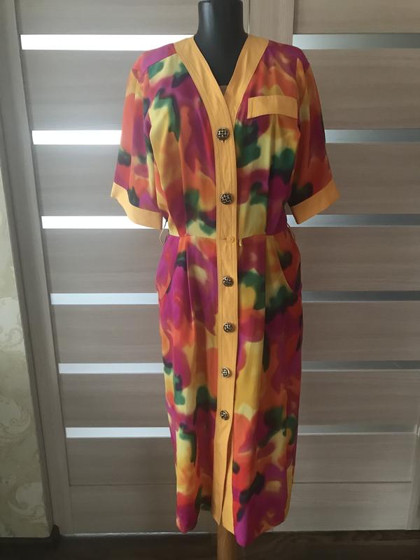 : Пог 46 см, ПОТ 38 см, поб 59 см, довжина 115 см, довжина до талії 40 см, ширина плеча 41 см, довжина рукава 28 см, ширина рукава 19 см. Полієстер, віскоза. Кармани . Пояс відсутній , не носили.