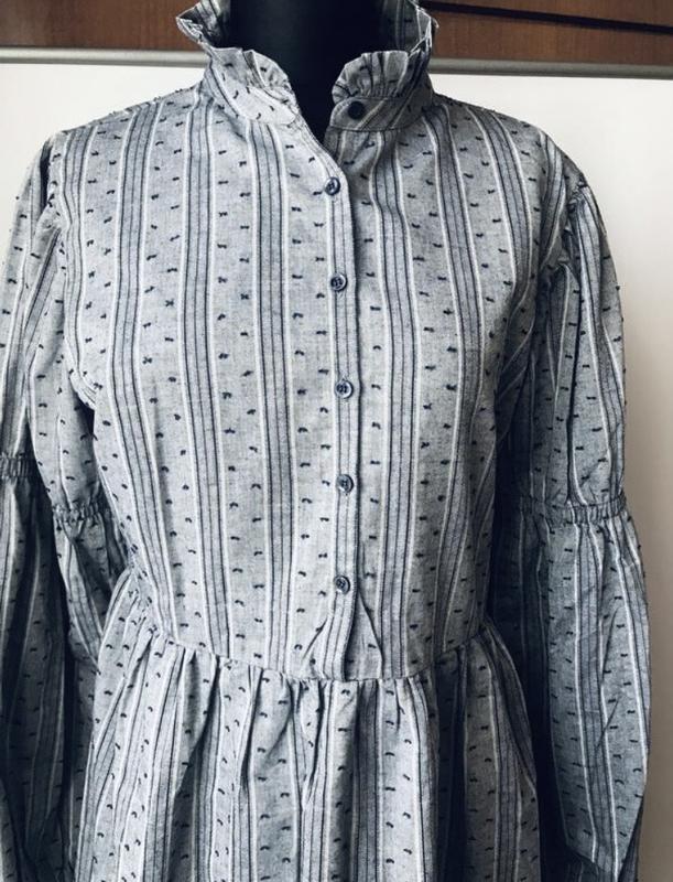 Платье британского известного бренда, 100% коттон,принт полоска, шитье, риски вышиты, по переду застежка на пуговицы, и запасной, отрезное по талии, присборенное со стороны скрытная молния, изюминка- рюша по ши, интересный рукав, по низу и над локтем на резинке, создает двойной фонарик, состояние и фасон максимально показано на фото, ткань не тянется, размер указано 12, ориентируйтесь по замерам. Замеры: долж-88, до талии-40,5, пог под проймами-50, по вытачкам-47, пот-41, по бедер-64, ш плечам-38, по проймам рукава-24, по низу-12, резинка тянется, длин рукава-62, по стойке по ши-20, замеры выполнены в спокойном состоянии, если какой-то важный перемеряю, возврат не имеет, ответю га все вопросы, отправлю удобной вам по почте после оплаты на карту Приват или Моно, читайте раздел» про меня, накладной платеж с подпиской и безопасная оплата только Новая почта