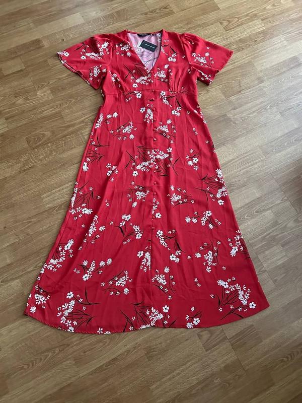 Красное платье миди с цветочным принтом