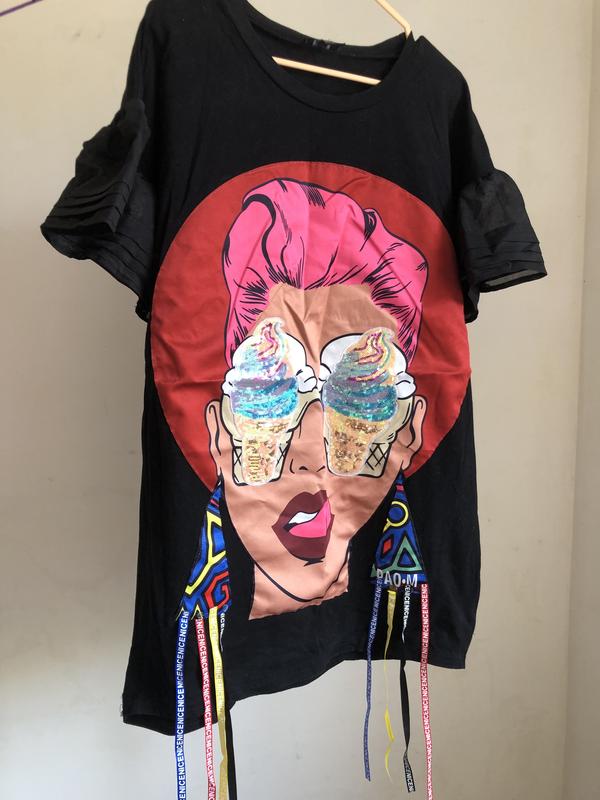 Супер крутое, комфортное коттоновое платье оверсайз С яркой вставкой и лентами. Есть маленький нюанс на последнем фото. В цене учтены. Оплата по этому товару сразу на карточку. Размер м/л Замеры длина 80 плече 22 + 16 рюша Пог 62 Пот 57 Заходите на страницу, имею много классных вещей 😊