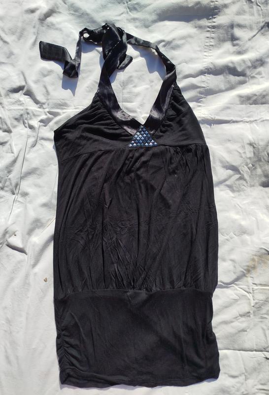 Черное платье с открытой спинкой, завлекается на шее и с красивыми декольте