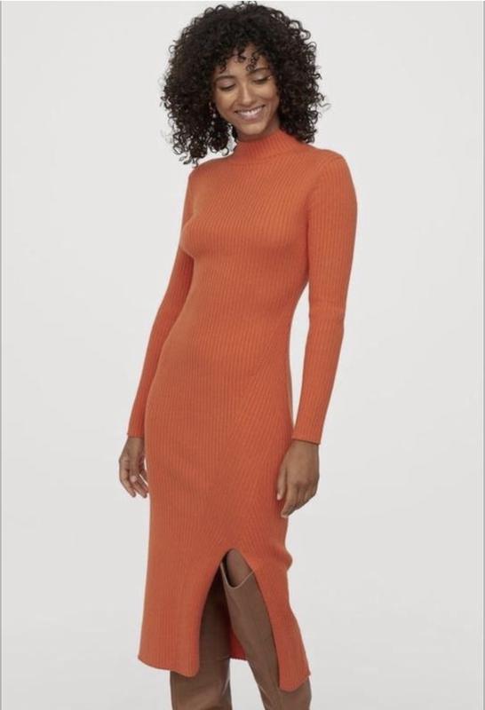 Очень красивое платье в рубчик,кораллового цвета!!Лягает по фигуре!!Стан идеален
