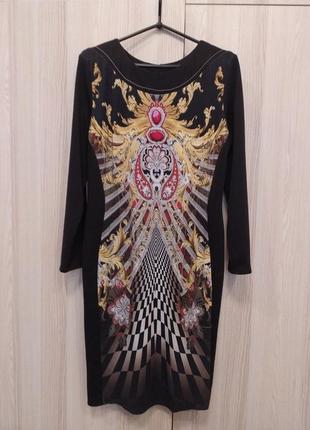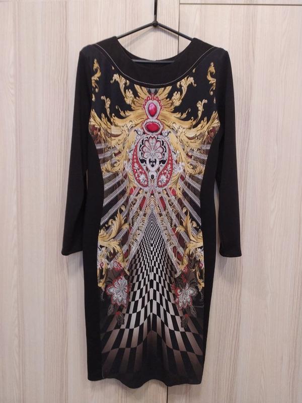 Платье PRIMA р. 42 черное на молнии сзади, с цветным передом, украшено двумя окрасками, вкраплениями под металл. шерсть, хлопок, полиэстер. ПОГ 46 см, ПОталия 42 см, ПОБ 46 см, пройма 24 см, длина рукава от плеча 56 см, плечи 41 см, длина от горловины 92 см.