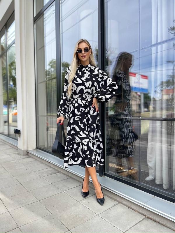 Сукня арт. sat. 5513 Размеры: S(42-44); L(46-48) ; XXL(50-52) ; 3XL(52-54) Ткань: жатка Турция Пояс из ткани. Застегивается платье на пуговицы. Очень стильная и качественная модель. Цвета: черный и белый