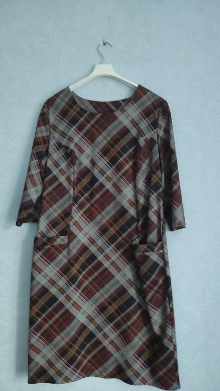 Женское платье на осень. Ткань почти не тянется, не мнется, достаточно теплая, как раз на осень. Сзади декорировано пуговицами на планке, не расстегивается, имеет карманы. ПОГ 52, ПОБ 56, длина 100, плечи 43, рукав 45 (3/4). Нашитых броков нет. При покупке бирка была пристегнута и не сохранилась. Вещь из собственного гардероба, не секонд.