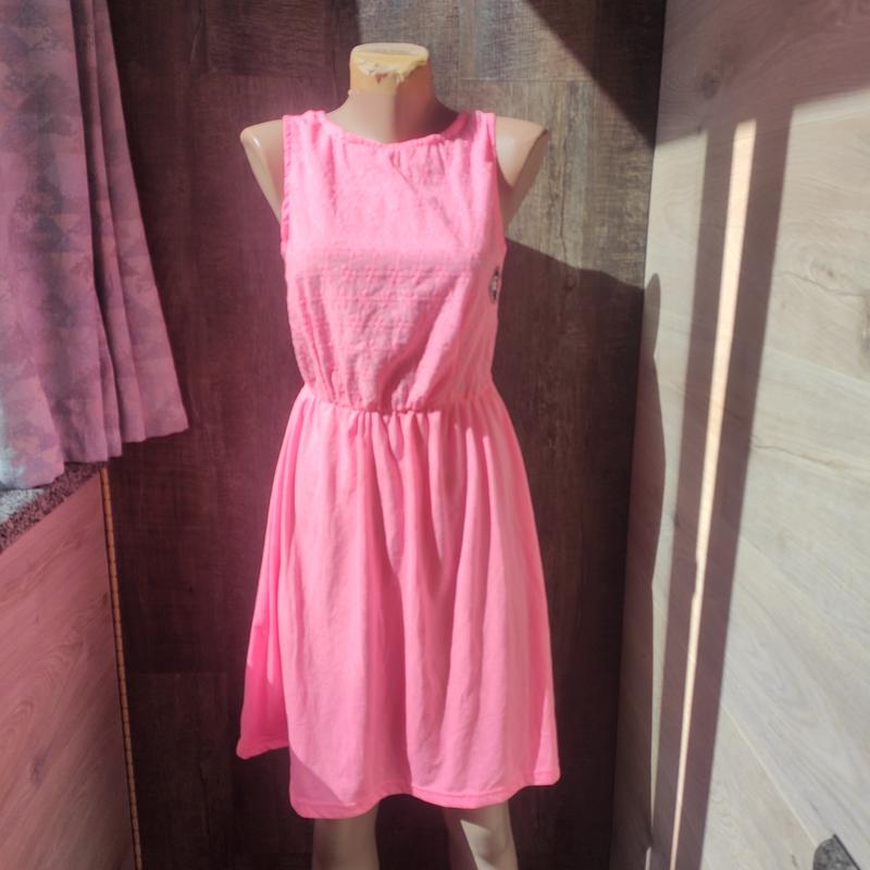 Ярко-розовое повседневное летнее платье замеры: длина-87 пог-39 пот-28(резинка, тягнеться до 40 )