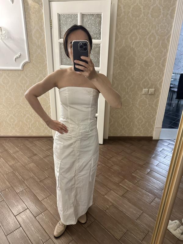Белая сукня від Zara, розмір XS, склад 100% coton Довжина 116 От декольте до талий 27 см Пояс 35 Бедра 46
