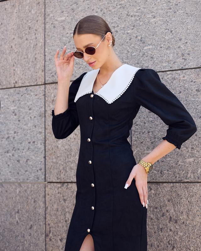 Приталенное платье миди из экозамши с отстегивающимся воротничком