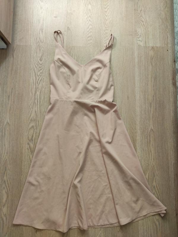 Платье в "бельевом" стиле. Цвет пудрово бежевый. Состояние идеал. Красивая спинка с бретелями крест накрест. Длина миди. Замеры: длина 108, талия 38,грудь 44. Бретели не регулируются.