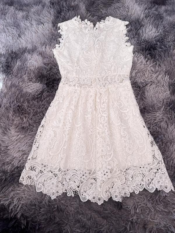 Белое кружевное платье Замеры: плечи - 37-40 ОГ - 44 Талия - 36 (+5 см немножко тянется) Длина от плеча 86 Новое одевалось один раз, без дефектов) продаю потому что малое)