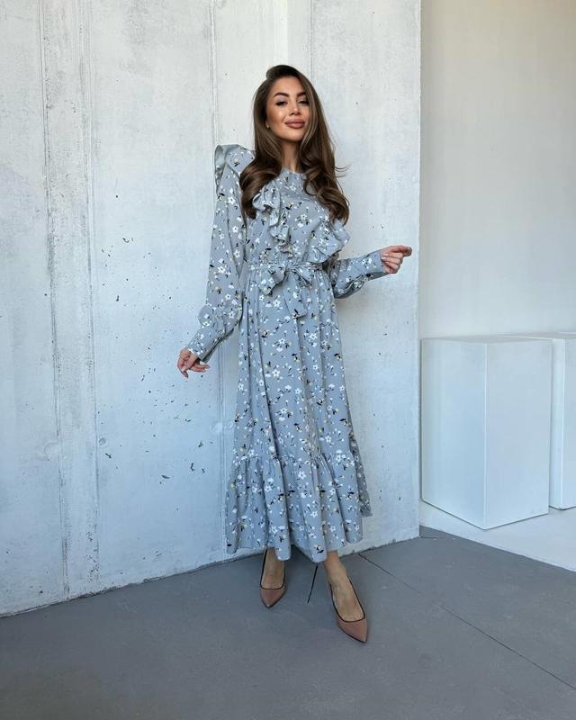 Мод 160 Платье миди с рюшем 📍Тканина - софт 📍Размеры :42-44,46-48,50-52 Романтичное платье в нежных цветах.Длина миди.Сукня, чарующая и придающее уверенность.Это то, что должно быть в твоем я гардеробе. Imma