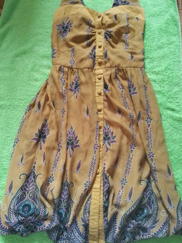в хорошем состоянии, на пуговицах, красиво смотрится на фигуре, длина 97, пог 37, пот 36, бедра свободно, длина лямок 15 см.