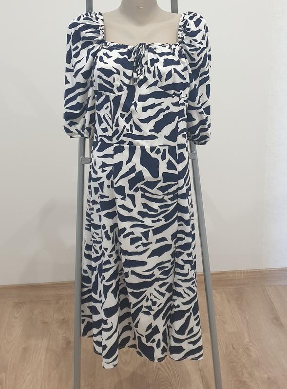 На грудях зав'язка, по спинці резинка, на талії по типу корсет, але без зв'язок, збоку розпірка, тканина легенька, плечі можна спустити, рукав ліхтариком ПОГ 44-55см ПОТ 42-50см ПОС 60см Довжина від плеча 110см