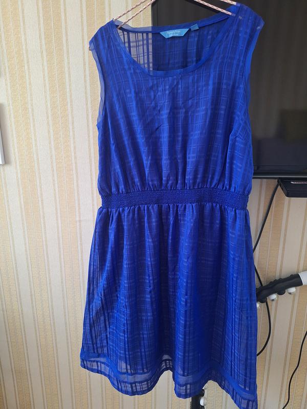 Летнее платье цвета электрик (индиго) - насыщенно- синее (как на последнем фото), размер L, отличного качества, легкое и приятное на ощупь, с подкладкой, состояние "как новое". Размеры: длина (от плеча) 98см., длина (от подмышки) 75см., ширина талия 41 (×2) см., ширина по плечам 38 см.