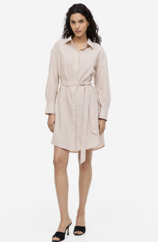 Бежевое льняное платье рубашка H&M р-рXS оверсайз, 52%лен. 48%хлопок, ПОГ56, ПОТ56, ПОБ57, карманов нет, длина по спине 100, впереди 98, рукав от горловины 72, бока закруглены,пояса нет, состояние идеальное, 340грн