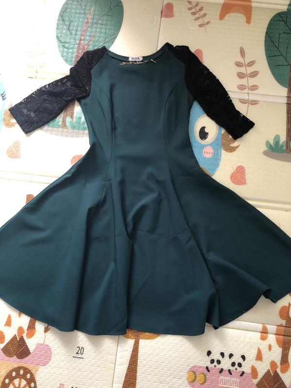 Гарна сукня, тканина стрейч і основна, і на рукавах, застібка збоку блискавка.Довжина-93,пог-40,пот-34, стегна- вільно.Довжина рукава-32., в ідеальному стані.