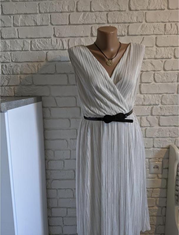 Біле плаття на підкладці, гофрована тканина Розмір виробника 12; 40. ОГ 90-100 см Талія на резинці 86-102 см Довжина 103 см