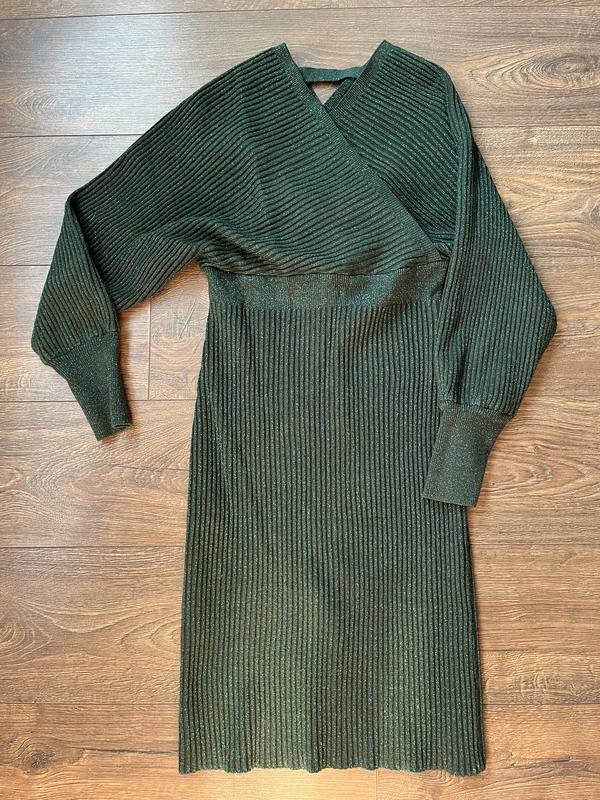 Сукня міді на запах, з відкритими плечами в ідеальному стані. Розмір М, тягнеться по фігурі. Сезон осінь-зима-весна