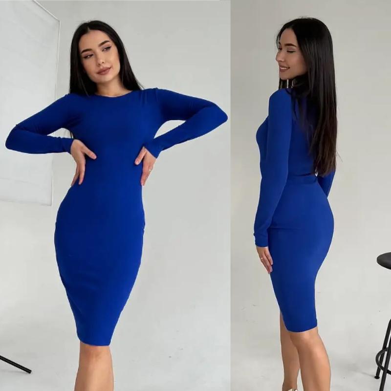 Классическое женское платье футляр в обтяжку синее платье миди нарядное вечерние платье бо...