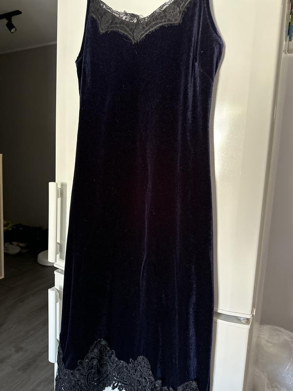 Вечернее платье Длина ниже колена Глубокий синий цвет Материал бархатистый Размер - М