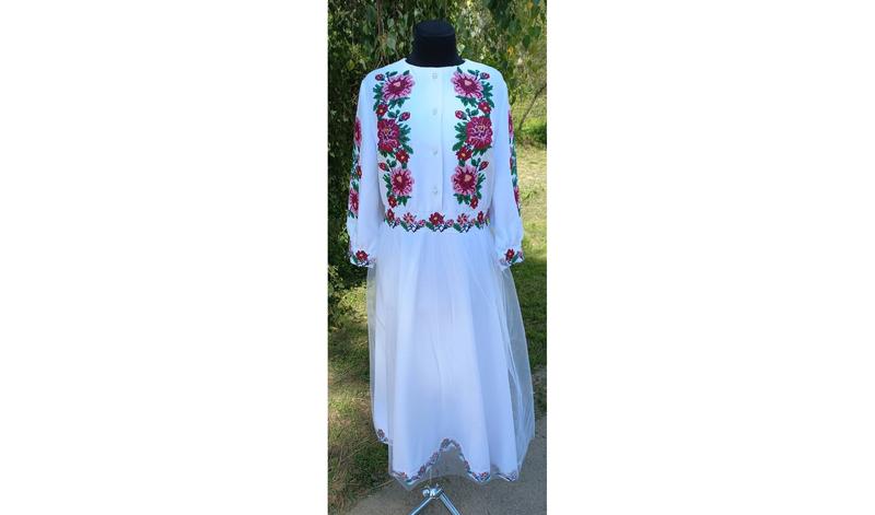 Машинна вишивка хрестиком. Тканина - барбі. Розмір будь-який, пошив по індивідуальних мірках клієнта. Кольори тканини, вишивки і довжину можна змінювати. Є чоловіча до пари