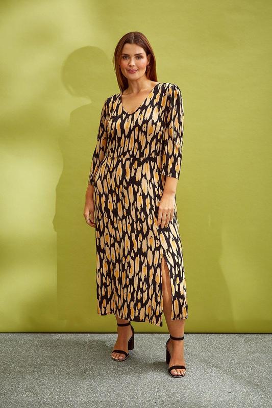 Платье миди с леопардовым принтом Wallis Размер указанный 16 Так и идет - на XXL ПОГ - 54, тянется к 59-60, ПОТ - 52-54, ПОБ - 63, тянется к 69. Длина 122. 96% вискоза, 4% эластан Нова Хорошее качество
