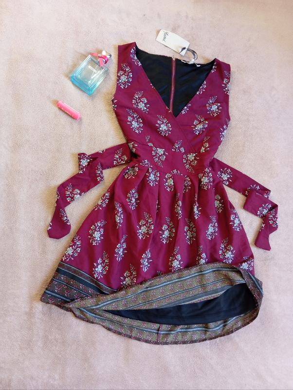Универсальное качественное шифоновое платье на подкладке с пышной юбкой с вшитым пояском Yumi 10 размер М Новая с биркой 100% полиэстер made in India длина 90 см полу обхват груди 47 см полу обхват талии 38 см(можно затягивать пояском) полу обхват бедер 68 см(юбка пышная) Товар в едином экземпляре, возврат нет, внимательно смотрите замеры, замеры точные ☝️ На теле фото не делаем, все вещи разных размеров, моделей для них нет ☝️