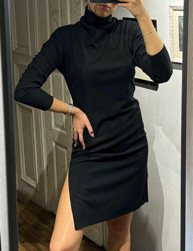 Тепла сукня-гольф в рубчик