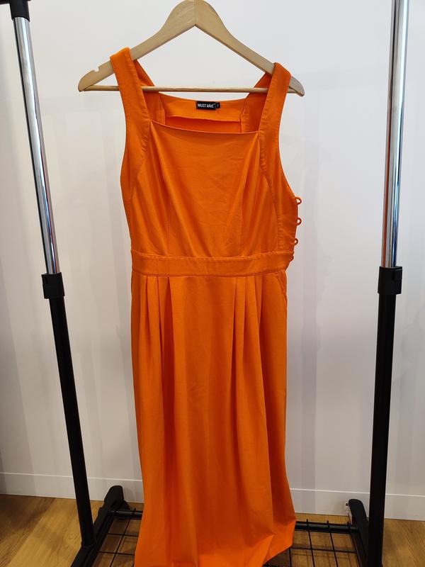 Платье летнее сарафан красного цвета (ближе к морковному, но менее яркий чем на фото). Збоку на гудзиках. Супер качественная и плотная ткань. Идеальное состояние. Размер S (36)