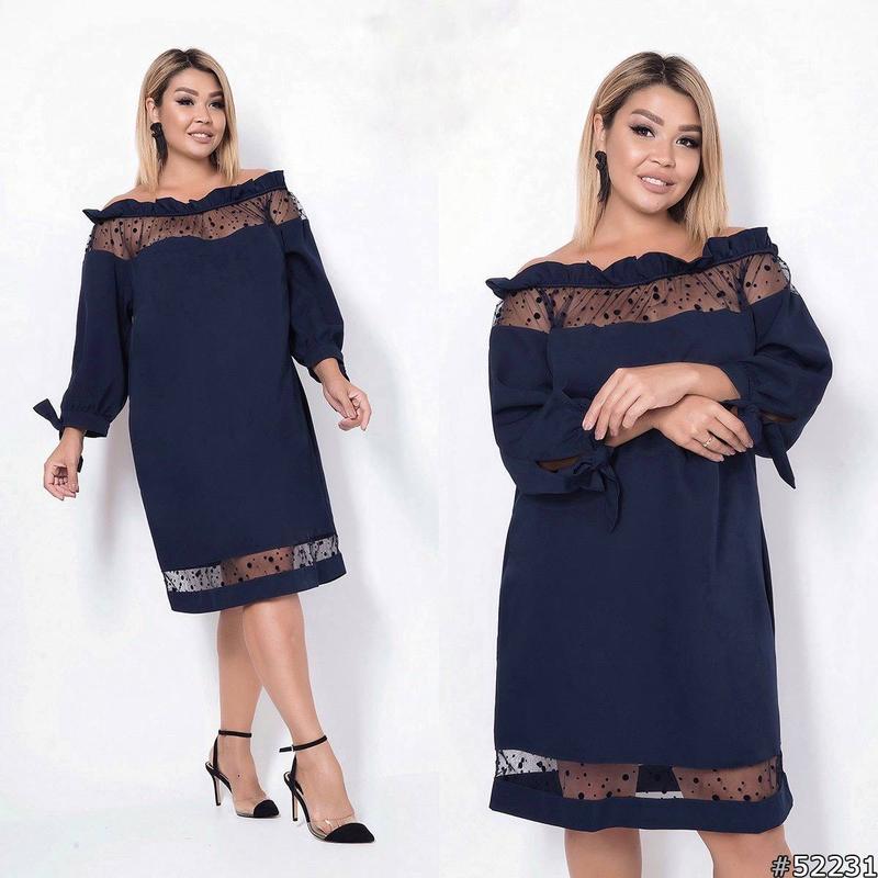 Сукня 233 Ткань: костюмка и сетка с флоковым напылением Размеры: 48-50, 52-54, 56-58, 60-62. Цвета: черный, темно-синий, изумруд, марсал Цена: 1250