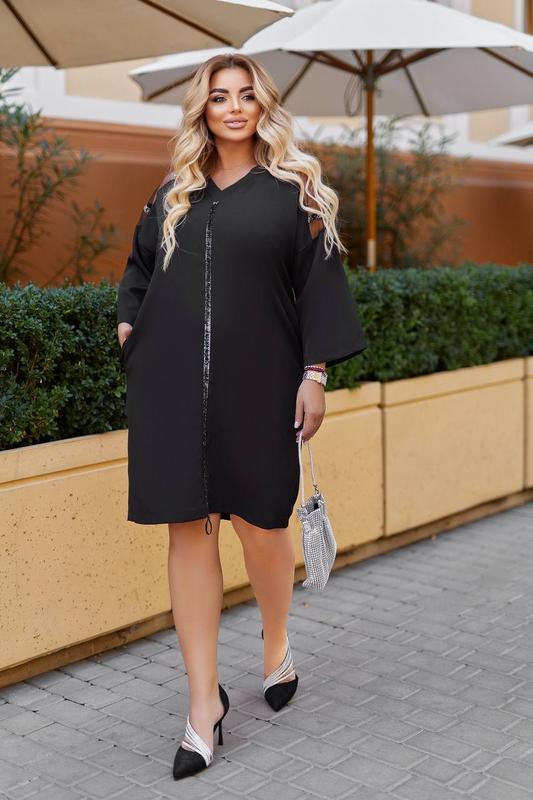 ✅✅✅НОВИНКА Платье Модель 986VL Цена 1200грн Размеры : 46-48,50-52,54-56,58-60,62-64 Цвет: черный Тканина : крепкостюмка , сітка Платье свободного кроя, рукав три четверти, по бокам карманы, на плечах декоративная сетка, платье украшено бархатной лентой на плечах и спереди. Параметры модели-нормы ОГ98, ОТ76, ОБ106, рост 170см, на ней одет размер 46-48; параметры модели-балта Инны ОГ110, ОТ86, ОБ112, рост 165см, на ней одет размер 50-52. Замеры изделия: Размер 46-48: Объем груди 120 Объем талии 110 Объем бёдер 112 Длина рукава от горловины 59 Длина по спинке 98 Размер 50-52: Объем груди 124 Объем талии 118 Объем бедер 120 Длина рукава от горловины 60 Длина по спинке 100 Размер 54-56: Объем груди 132 Объем талии 124 Объем бёдер 128 Длина рукава от горловины 62 Длина по спинке 101 Размер 58-60: Объем груди 136 Объем талии 132 Объем бёдер 136 Длина рукава от горловины 62 Длина по спинке 104 Размер 62-64: Объем груди 144 Объем талии 138 Объем бёдер 144 Длина рукава от горловины 62 Длина по спинке 104см