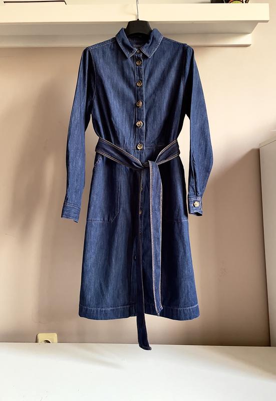 Стильное темно-синее джинсовое платье, среднее плотности, отменного качества и кроя.Замеры смотрите на фото.