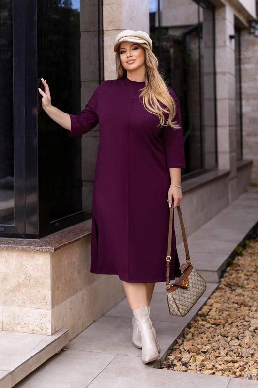 Трикотажное платье свободного кроя изготовлено из трикотажа двунитка, имеет длину миди, что делает его универсальным как для повседневных, так и для более формальных выходов. По бокам есть разрезы, рукава три четверти -- удачный выбор для межсезонья. - Длина по спинке: 114 см - Длина рукава от плеча: 34 см - Длина рукава по внутреннему шву: 27 см - Полуобхват груди: 41 см - Полуобхват бедер: 51 см - Разрез: 36 см - Материал: Двунитка