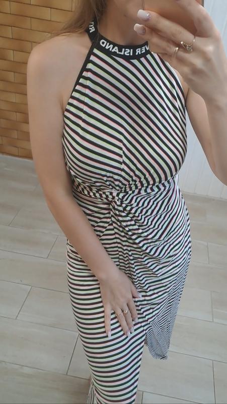 Очень интересное платье, со сборкой на талии и красивым вырезом на шее. Размер на xs-s, хотя указанный детский размер