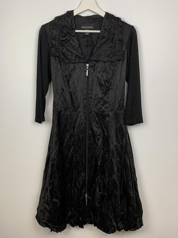 Frank lyman dress black size 12mesh sleeves witchy whimsigoth gothic midi
