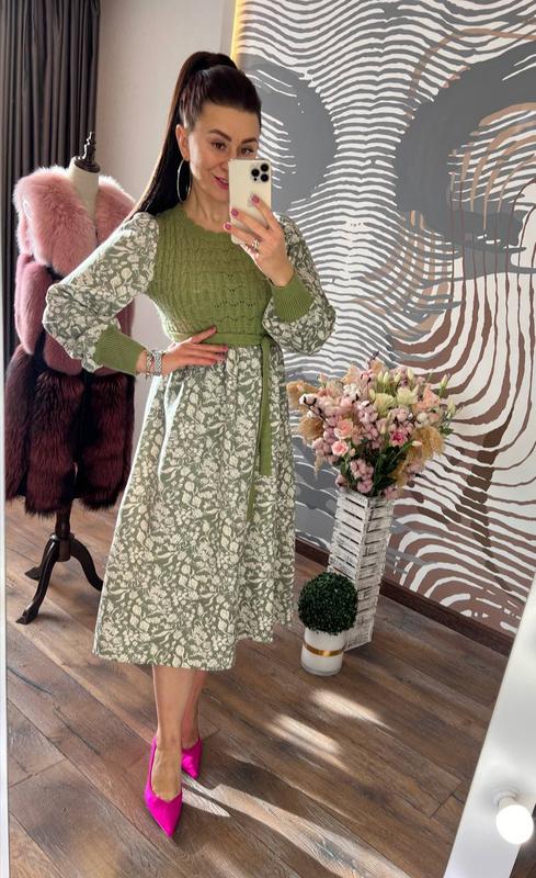 невероятно красивое платье приталенного кроя с круглым горлом, длинными рукавами и пришитым поясом, привлекает нас оригинальным пошивом: эффектный ансамбль трикотажа машинной вязки с красивым рисунком и плотного коттона с изящным цветочным принтом, у нее просто невозможно не влюбиться, платье красиво смотрится на фигуре любого типа, отличное качество и интересный дизайн не оставят равнодушной ни одну ценительницу красивой одежды. размер единственный 42-44 длина 116-118 см, пг 42-44 см хорошо тянется, длина рукава от шеи 64-66 см код 0482