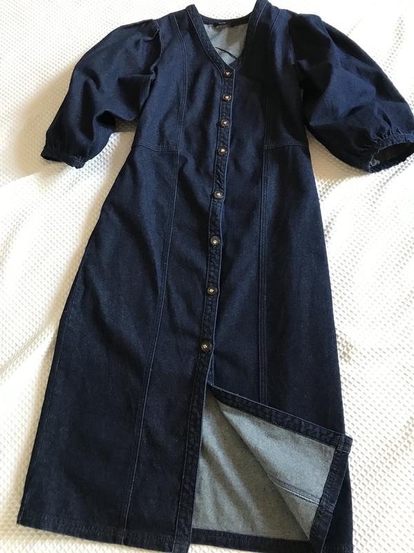 Стильное длинное джинсовое платье на пуговицах, по фигуре. Красивый обьемный рукав. Состояние нового. Полная оплата на карту Приватбанк. Через кнопку не отправляю‼️‼️120/51/43/52, рукав-47. Ткань котон средней плотности- не тянется
