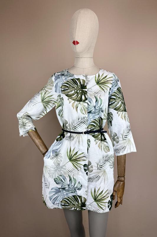 "11" Льняное платье Backstage by Oska 🤍 Стан нового! Очень эффектный и красивый принт и зеленых оттенках на белом фоне. Мягкий и качественный 100% лен! Имеет боковые кармашки. Размер S. Плечи 34см. Груди 50см. Рукав 49см. Длина 86см. Бедра 53см.