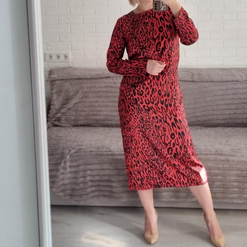 Сукня в леопардовий принт,одягнена на Параметри 90-74-99см . Підійде на с-м Заміри: Плечі-38см Рукав-56см Довжина-118см Ширина-45см