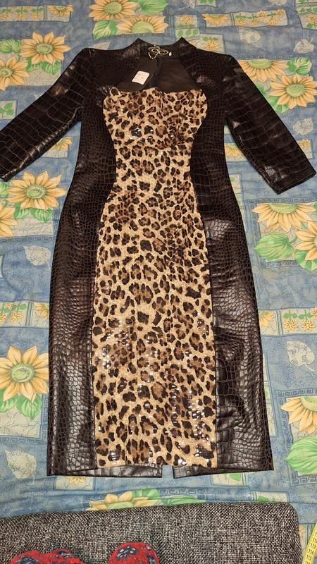 платье под крокодилов кожу, новое с биркой, сзади есть потойная змейка,замеры на фото. есть дефект на последнем фото,на рукове потерто