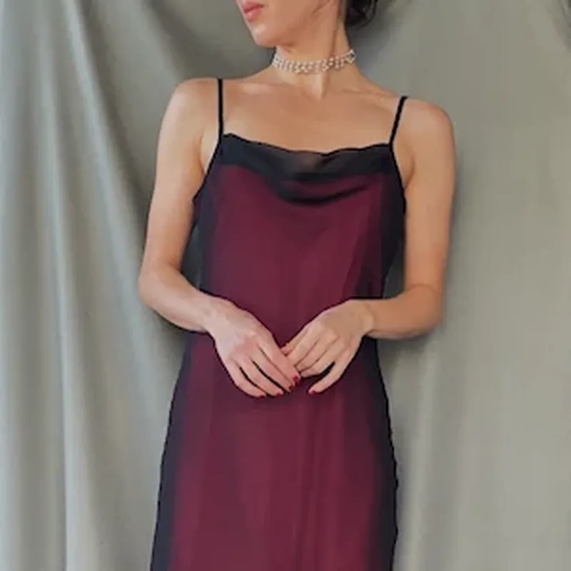 Сукня у білизнясому стилі/ Двійна ,внутрішня рожева атласна,зверху чорний півпрозорий шифон/ Підійде на с м л європейський орієнтуйтесь по замірах/ Довжина разом з бретелями 100 см і Пог 41 см/ Пот 41-42 см/ Поб 47-49 см/ Знизу 76-77 см/ Продається без повернення/ У складі поліестер/