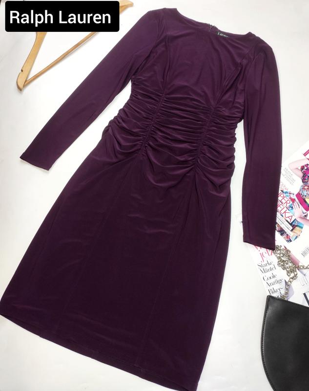 Платье женское миди фиолетового цвета со сборкой от бренда ralph lauren 4