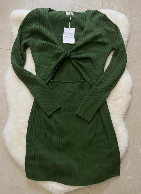 Платье, абсолютно новое, трикотаж, зеленого цвета, длинный рукав, размер английский 12, доставка по всей Украине