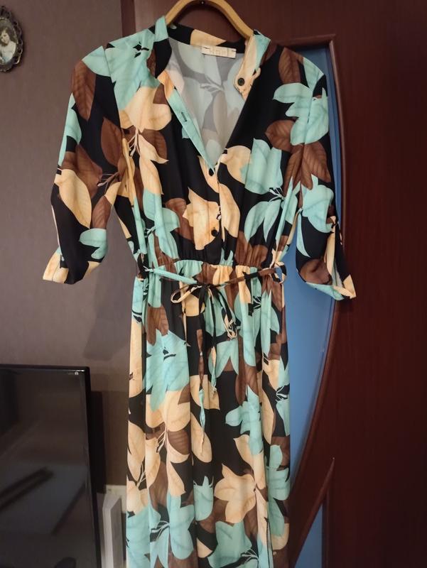 Платье бирюзовое в цветы Рукав покоряется Талия на резинке и с поясом Две распорки Не мнеться