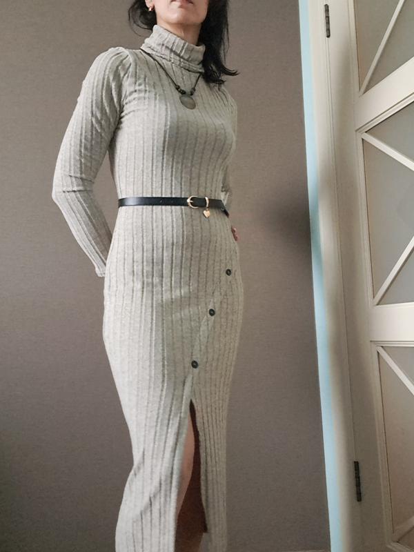 Сукня - гольф в рубчик, демисезон., длинная, с разрезом, Размер М Почти новая, без бирки Украшение и пояс не входит в цену