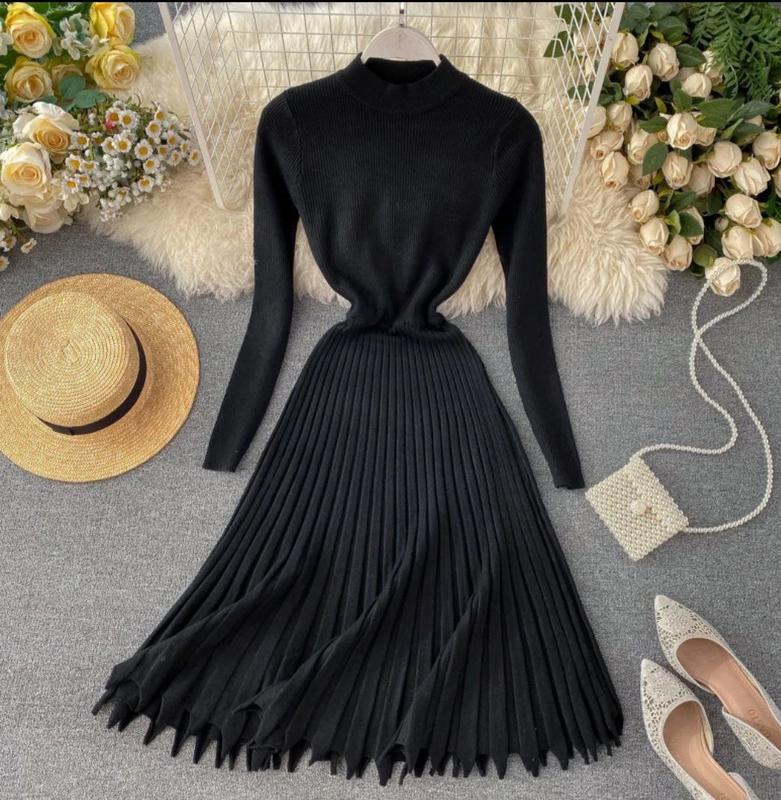 Платье плиссе трикотажное Люкс качества Милка машинная вязка Производитель Фабричный китай 80% хлопок 20% вискоза кар Цвет: пудра, черный, темный малахит -------------- Бюст 35/48 талия 31/41 длина 100