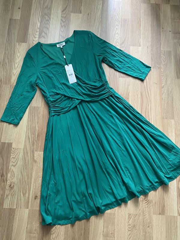 Цвет насыщено зеленый ( лучше всего передают последние фото где бирка) Размер 16 Ткань мягкая, красиво тянется Замеры плечи - 42 см, рукав - 49 см, ширина под руками - 52-64 см, талия - 44-54 см, бедра - 73-89 см, длина - 109 см